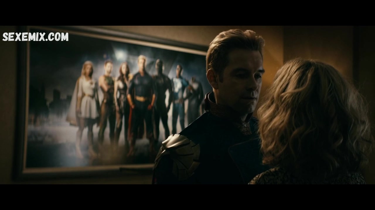 Beschreibung: Erin Moriarty in Superheldenuniform. Elisabeth Shue sitzt auf dem Schwanz ihres Freundes auf der Couch. Erin Moriarty und Elisabeth Shue spielen in dem 2019 erschienenen Film „The Boys“ nackt und sehen sehr sexy aus