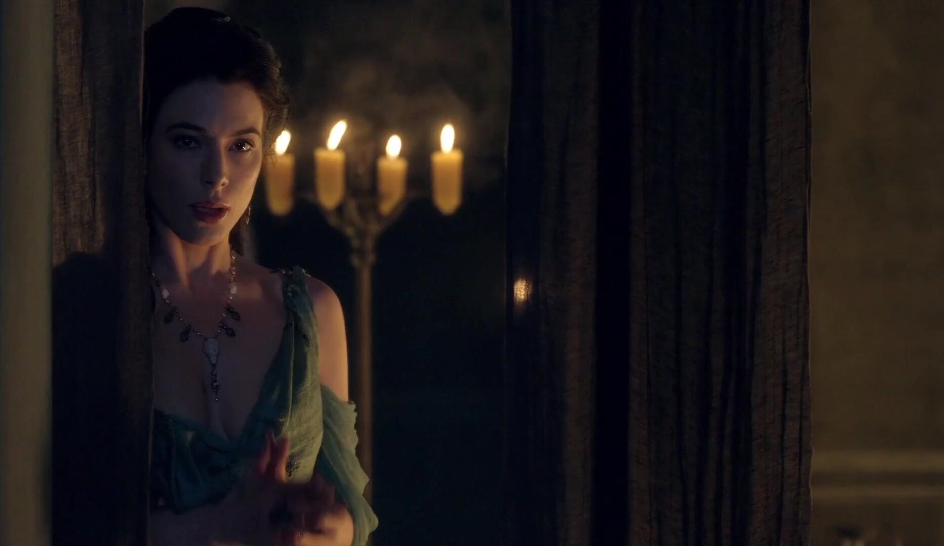 Jaime Murray spies on Lucy Lawless during sex, scene in Spartacus