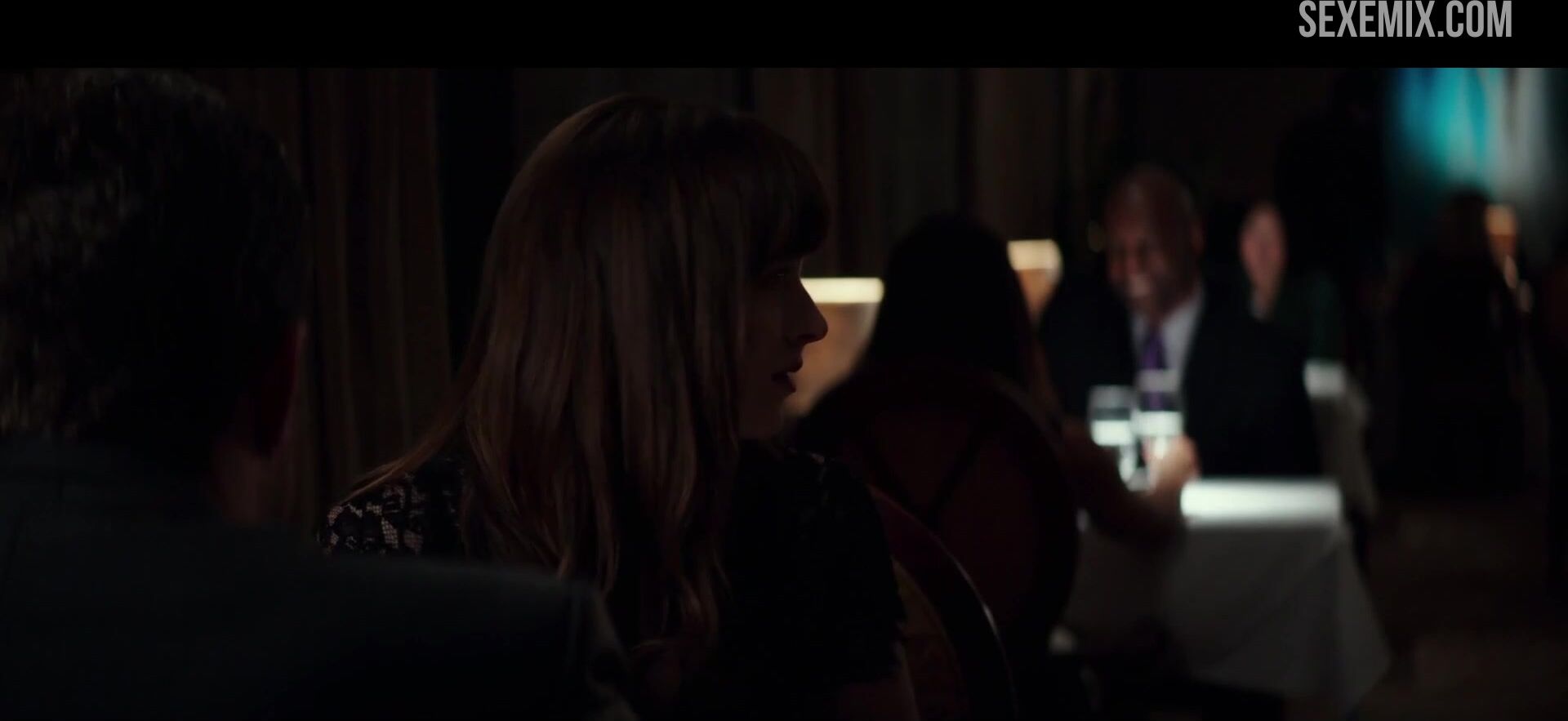 Dakota Johnson takes off her panties in a restaurant. Watch free HD video ass scene in Fifty Shades Darker