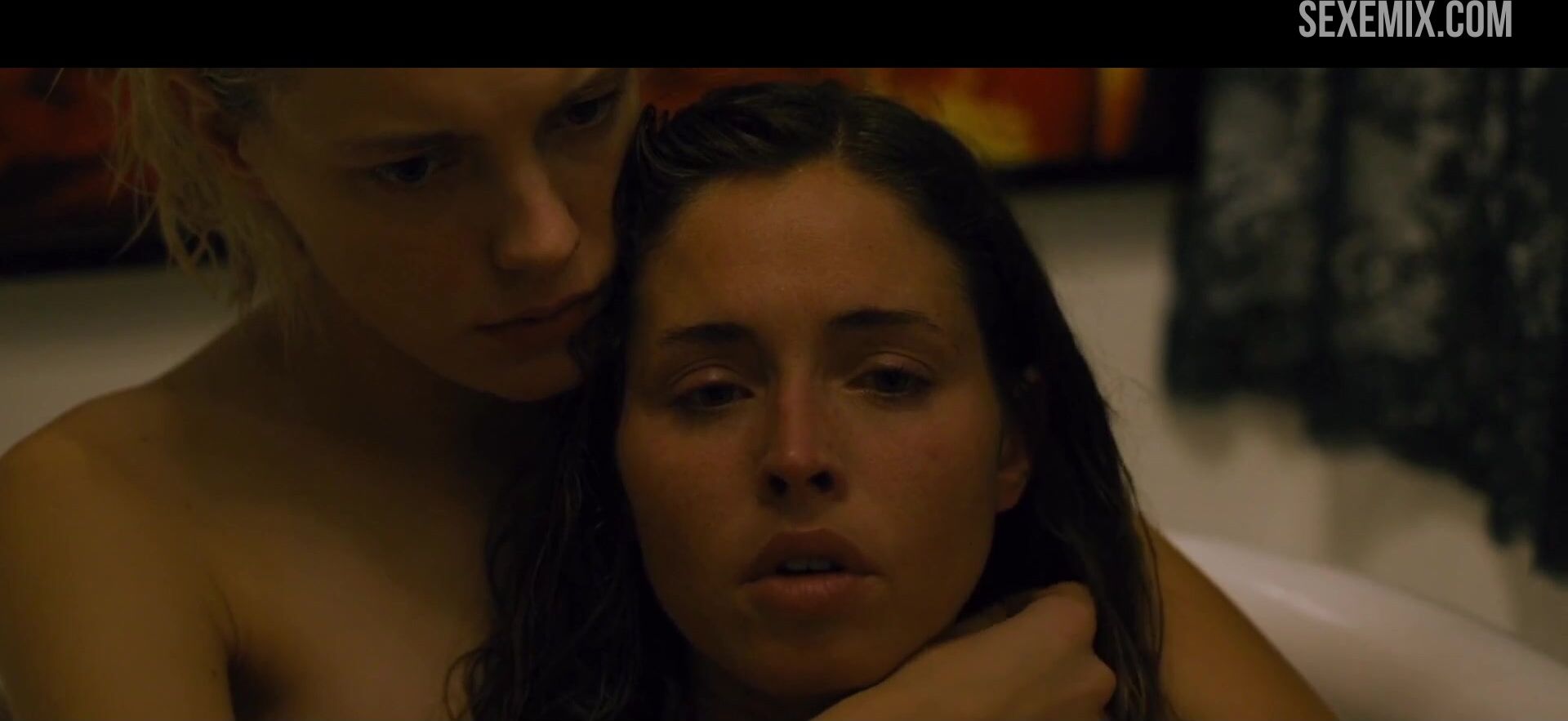 Erika Linder y Natalie Krill Escena con arnés en Debajo de su boca