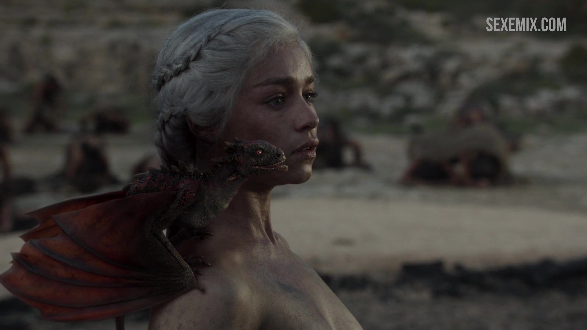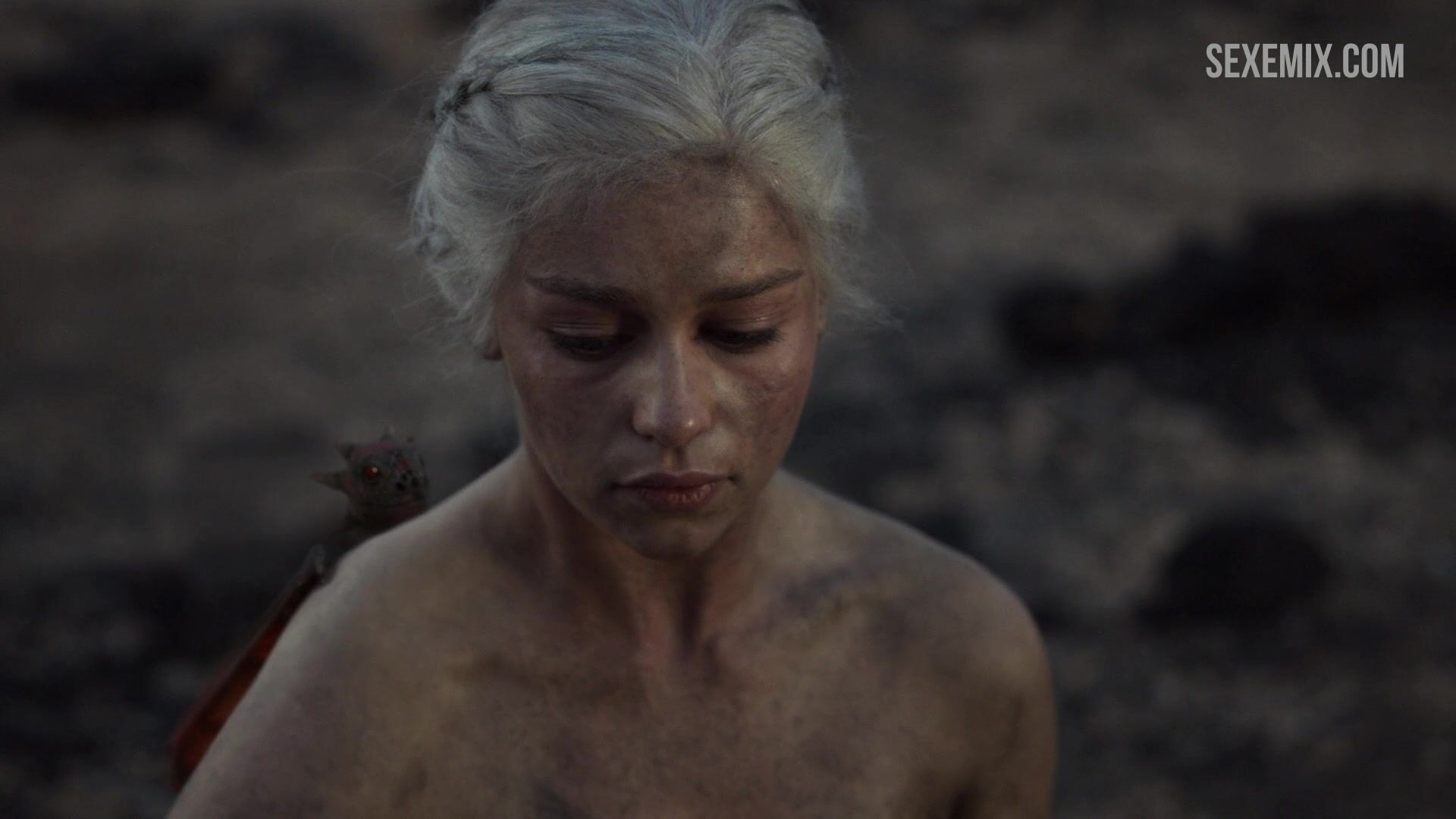 Emilia Clarke desnuda entre las cenizas. Ver vídeo HD gratis Sexo con pechos en cenizas, escena de Juego de Tronos