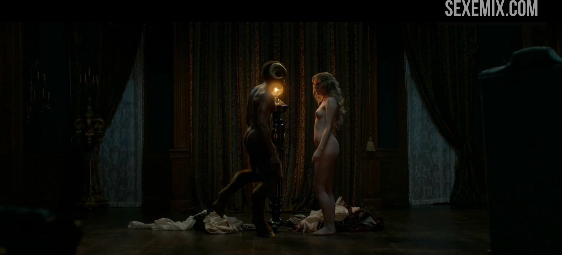 Tamzin Merchant Standing sexo misionero. Ver gratis HD Sexo contra la pared, escena en Carnival Row