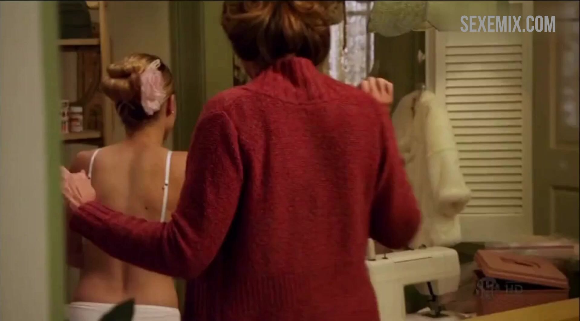 Laura Wiggins en sujetador y braguitas blancas, escena en Shameless