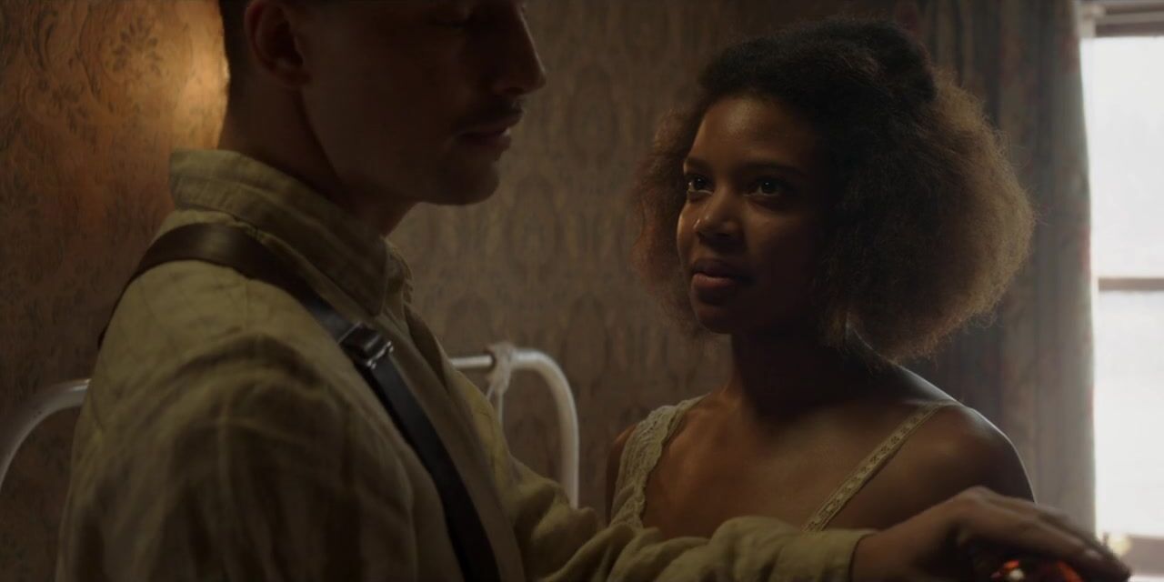 Chasten Harmon nue - Damnation s01e01 (2017). Chasten Harmon dans une scène nue de la nouvelle série télévisée Damnation. Elle montre la partie supérieure de son cul et quelques...