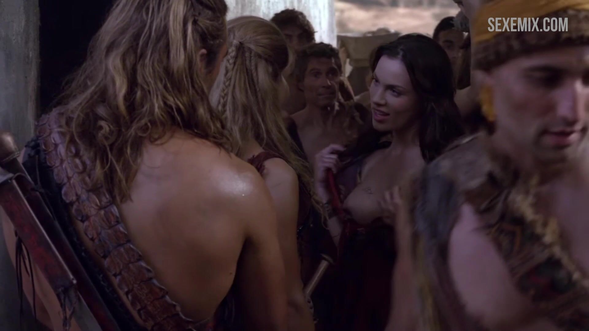 Ellen Hollman touchant les seins de Luna Rioumina. Regardez gratuitement la vidéo HD Scène de sexe de la série Spartacus : War of the Damned