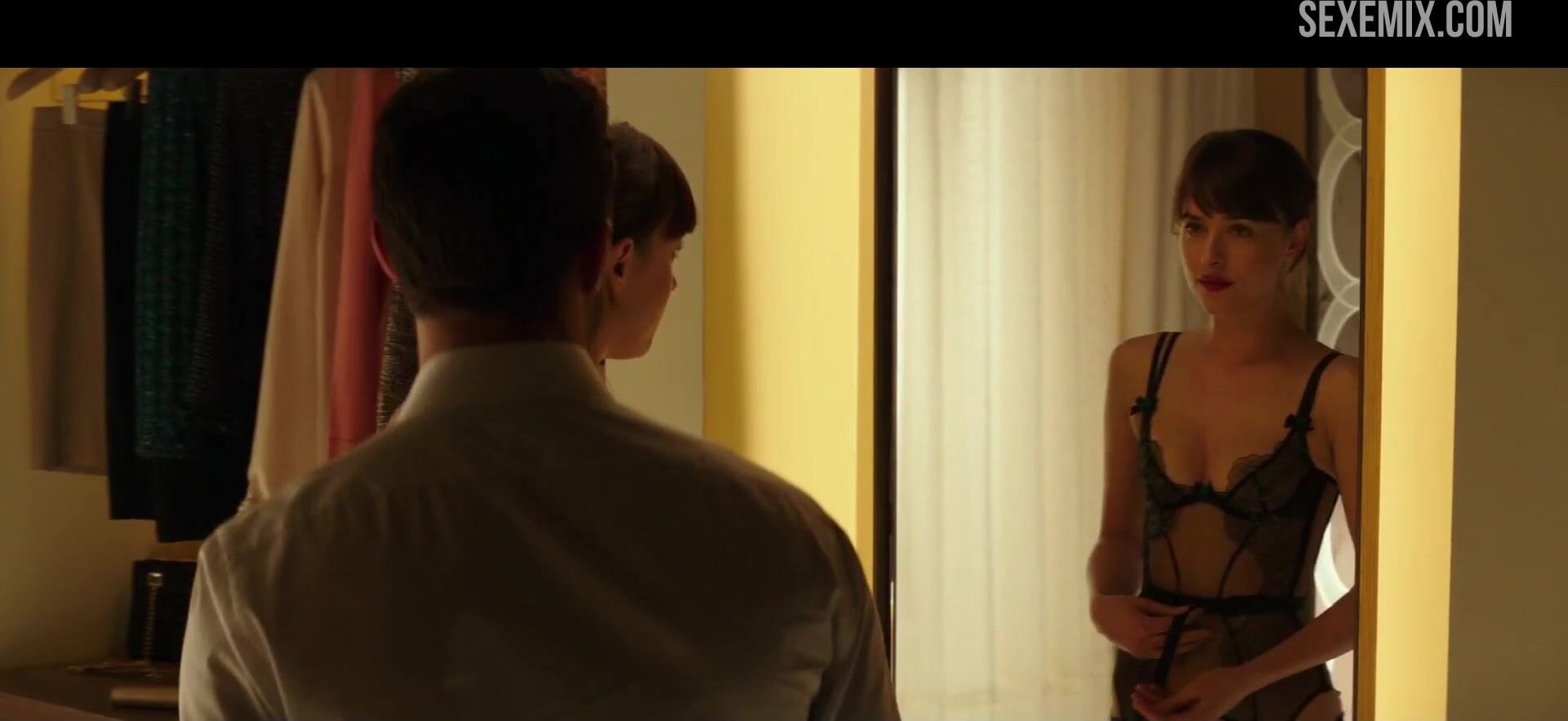 Dakota Johnson en lingerie noire érotique. Regardez gratuitement une scène de cul vidéo HD dans Cinquante nuances plus sombres