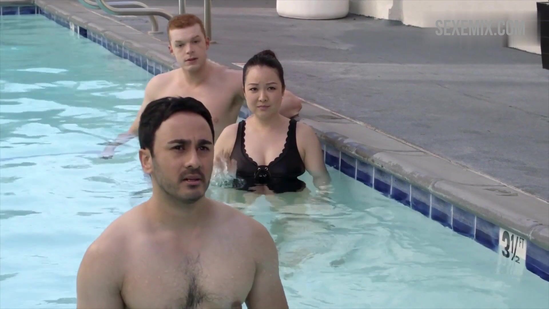Charlet Takahashi Chung en maillot de bain noir. Regardez gratuitement en HD Charlet Takahashi Chung nage dans la piscine en maillot de bain noir, scène dans Shameless