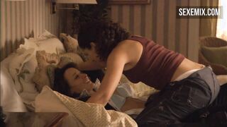 Ion Overman (Candace) scopa Jennifer Beals (Bette) sul divano. scene di sesso della serie The L Word. Guarda gratuitamente online