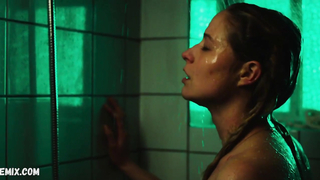 Niamh Algar fa una doccia, scena in Deceit s01e01-03 (2021 )
