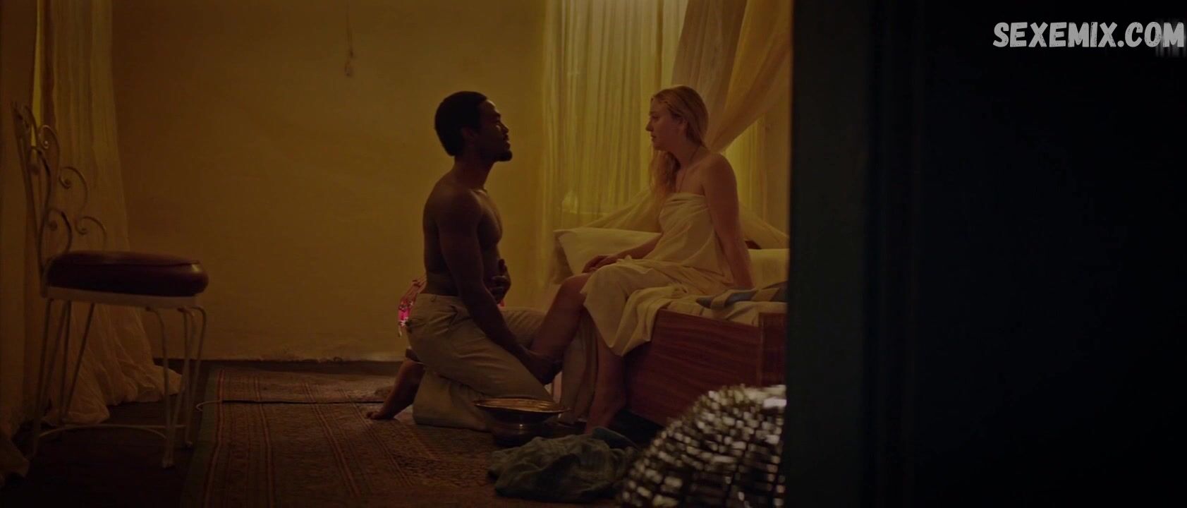 Sexo interacial de Dakota Fanning em posição de cavalo. O clipe foi retirado do filme Sweetness in the Belly. Que foi ao ar nas salas de cinema no ano (2019)