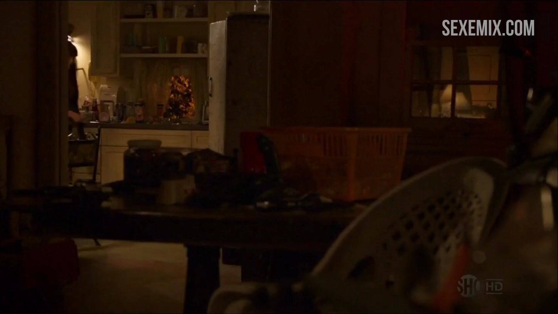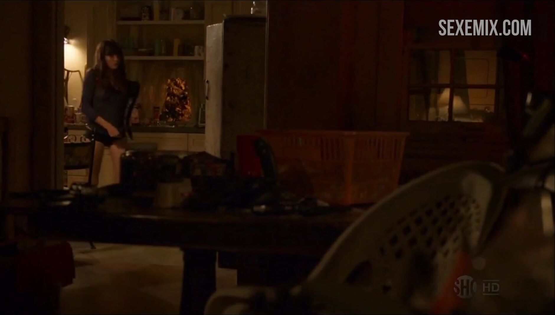 Emma Greenwell nua saindo da cama, cena em Shameless