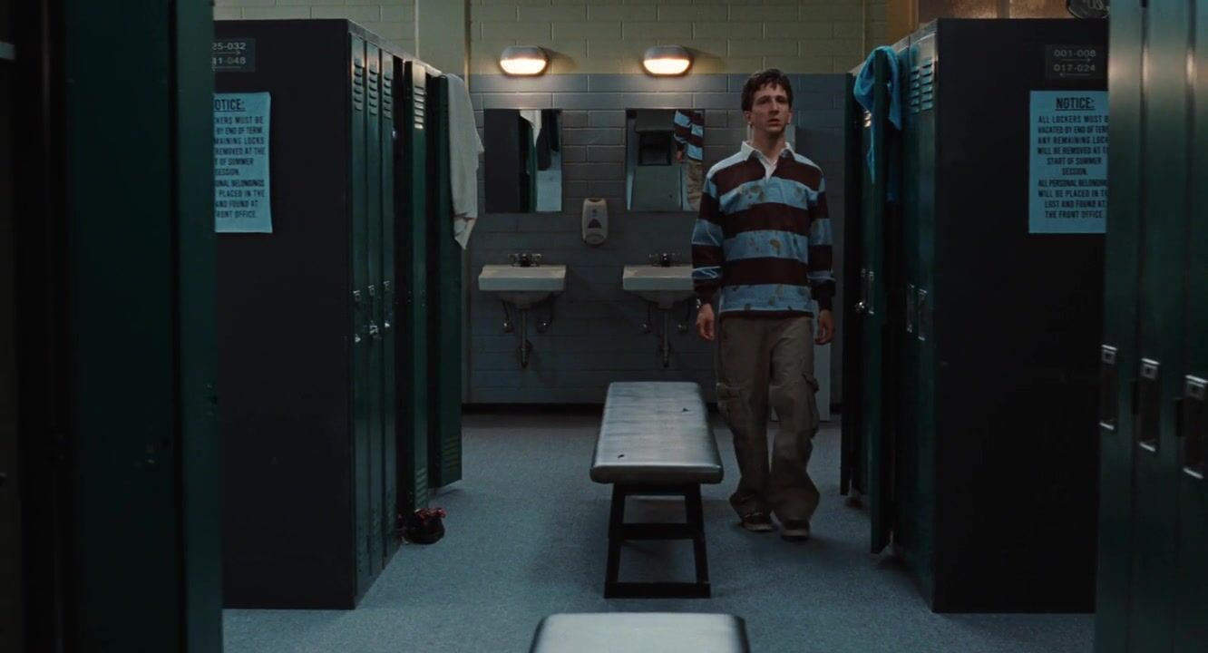 Сцена с Хайден Панеттьери из фильма «Я люблю тебя, Бет Купер» (2009). Хайден Панеттьери обнаженная стоит перед двумя людьми, скользя руками по чему-то...