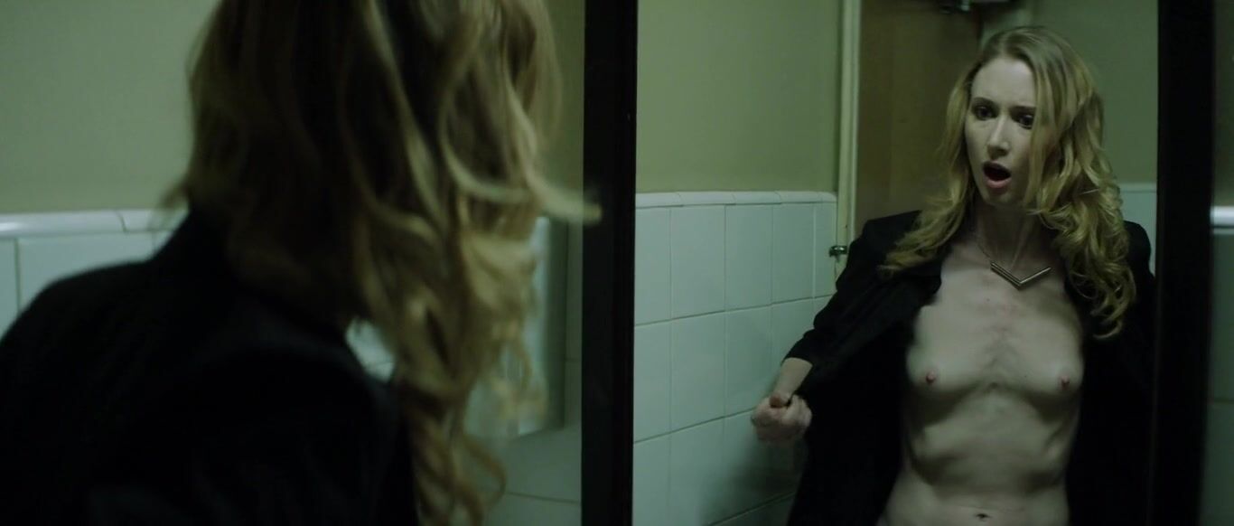 Jill Evyn çıplak, The Black Room'dan (2016) sahne. Jill Evyn, 2016 yılında vizyona giren The Black Room filminden çıplak sahnede. Bize göğüslerini gösteriyor.