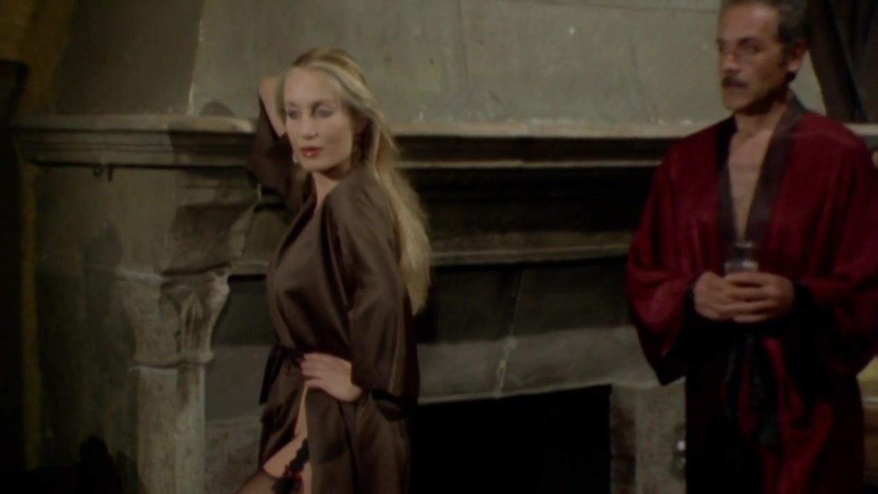 Patrizia Webley, Malabimba'daki çıplak sahnesinde. Bize göğüslerini, poposunu ve kıllarını gösteriyor
