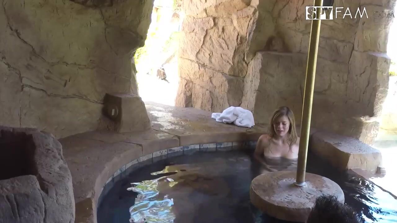 Güzel kız küçük bir açık havuzda büyük bir aletin üzerine atlıyor