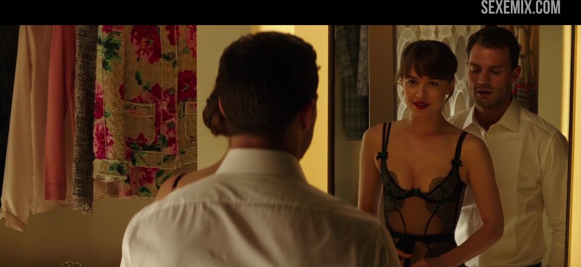 Heiße Dakota Johnson, in erotischen schwarzen Dessous in Fifty Shades Darker