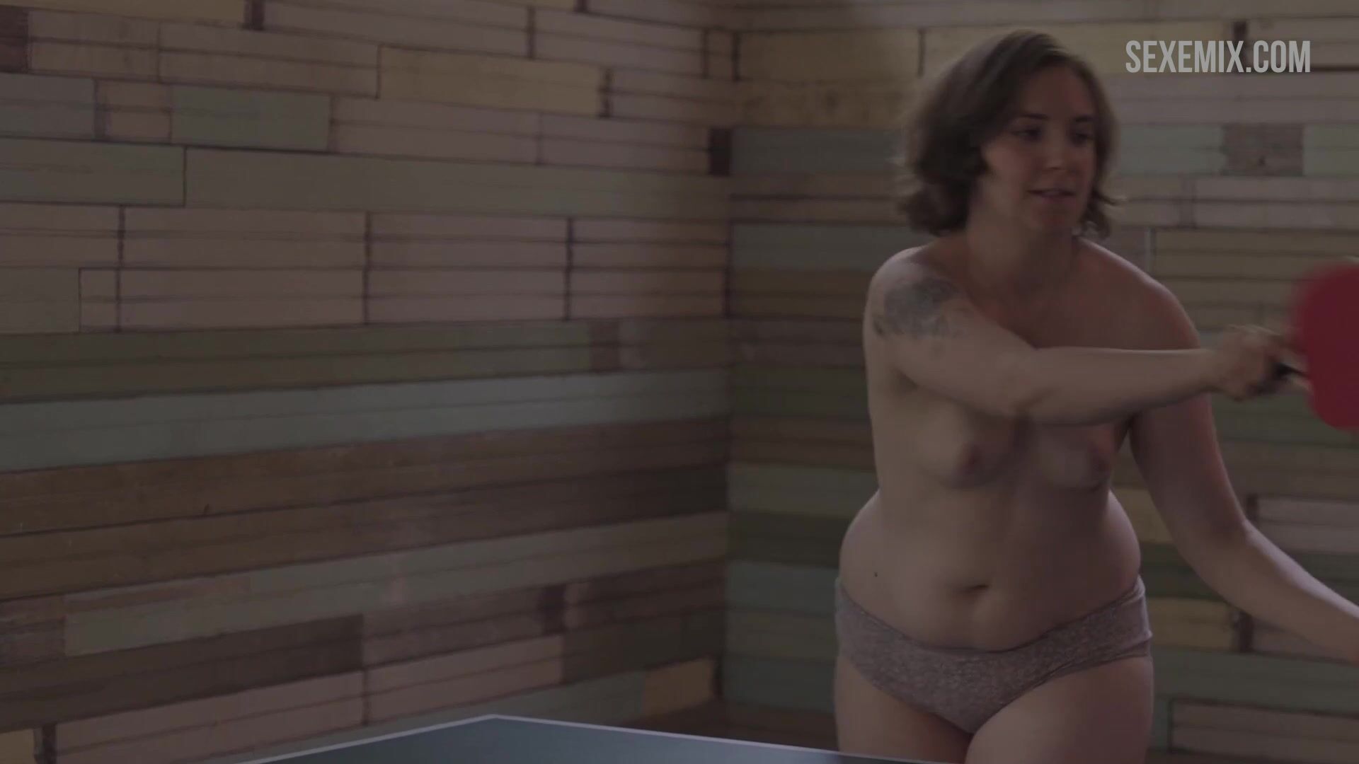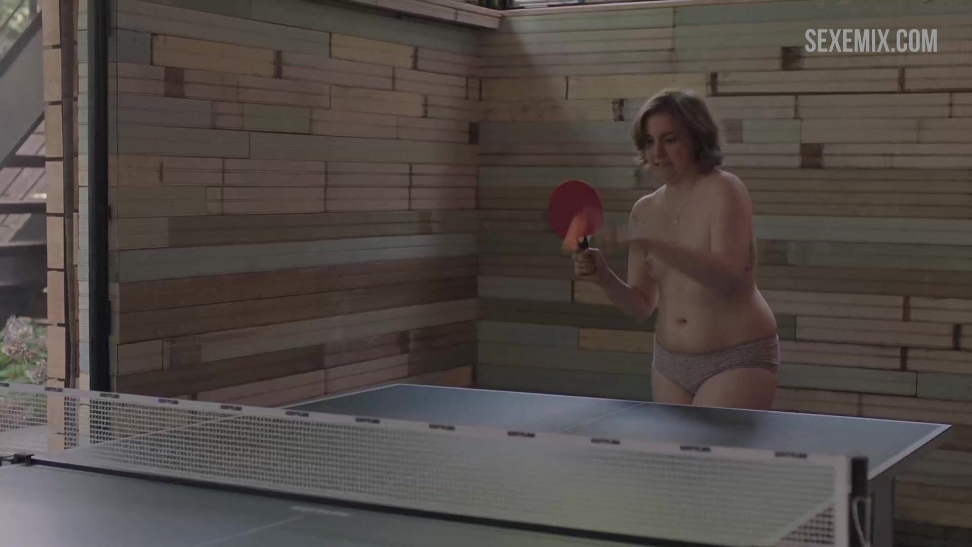 Lena Dunham sans soutien-gorge joue au tennis de table. Regardez une vidéo HD gratuite, une scène de seins dans Girls