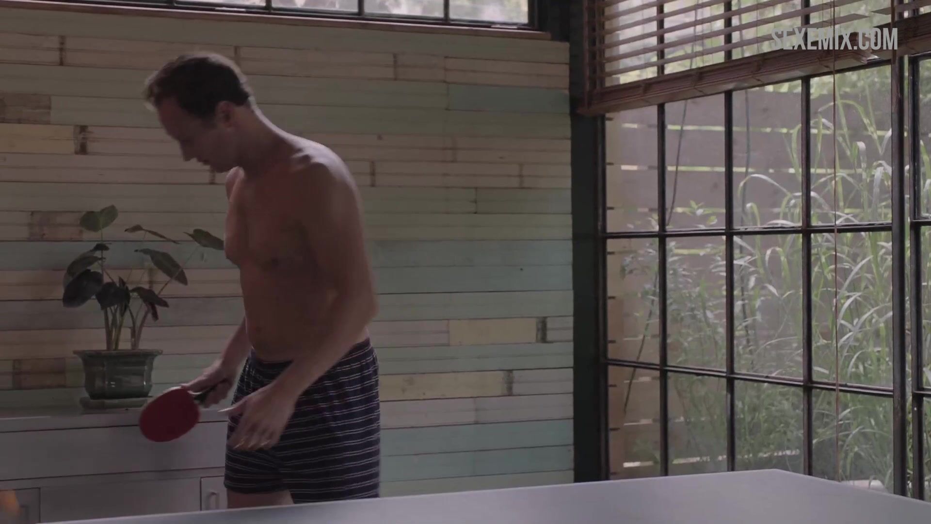 Lena Dunham sans soutien-gorge joue au tennis de table, scène dans Girls