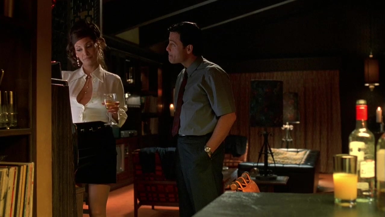 Descricao: Alex Meneses em cena de nudez do filme Auto Focus lançado em 2002. Ela nos mostra parte dos peitos.