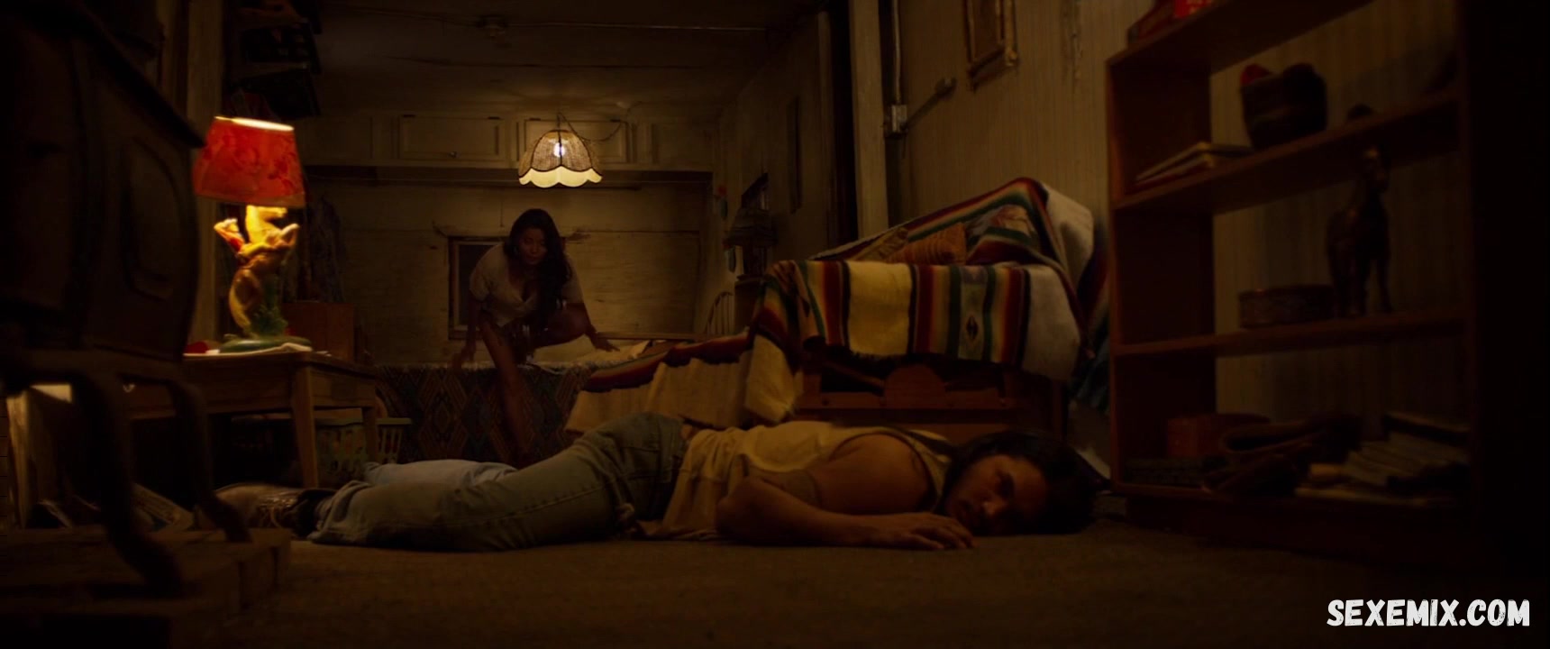Беренис Марло, Джейми Рэй Ньюман, Оуи Рэй сексуальные, сцена в Долине Богов (2019)