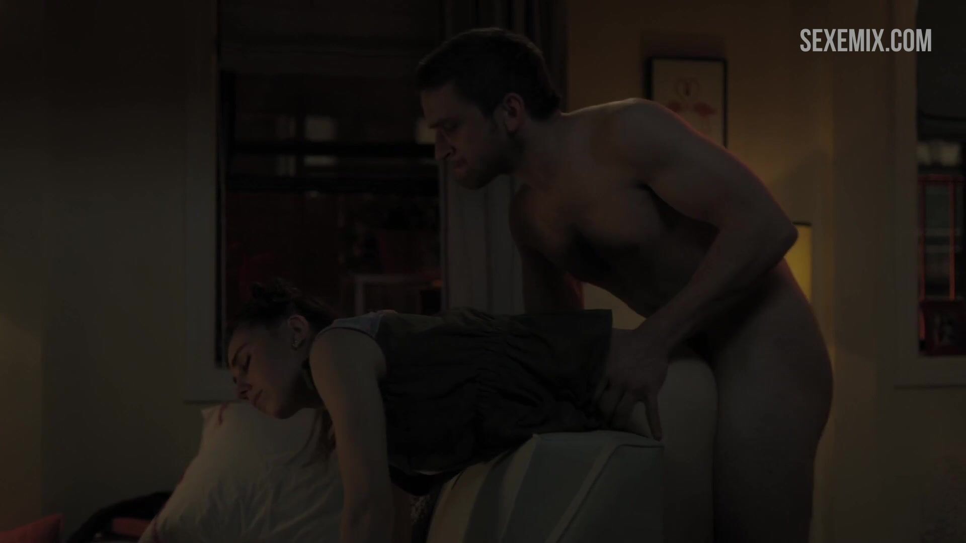 Zosia Mamet sikişmek için kanepenin üzerine eğildi, Girls'deki sahne